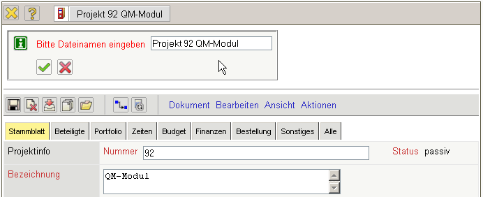 … wird die gesamte Projektstruktur angelegt. Mit Hilfe der Aktion “01 - Projektplanung” kann die Struktur eingesehen und verändert werden.