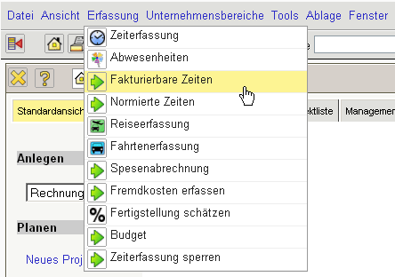 Bei der Abrechnungsart Aufwand, wird die Rechnung analog zur Vorgehensweise im Angebot erzeugt. Wenn der Leistungszeitraum (Zeitspanne) gesetzt ist, werden auch nur abrechenbare Leistungen innerhalb des Leistungszeitraums zur Abrechnung angezeigt. Die erbrachte Leistungen werden nicht immer wie erfasst zur Abrechnung freigegeben. Mit Hilfe der Funktionalität “Fakturierbare Zeiten” können die erfassten Zeiten für die Rechnungsstellung in Projectile bewertet werden. Diese Funktionalität wird überwiegend von Projektleitern verwendet, um die Rechnungsstellung vorzubereiten.