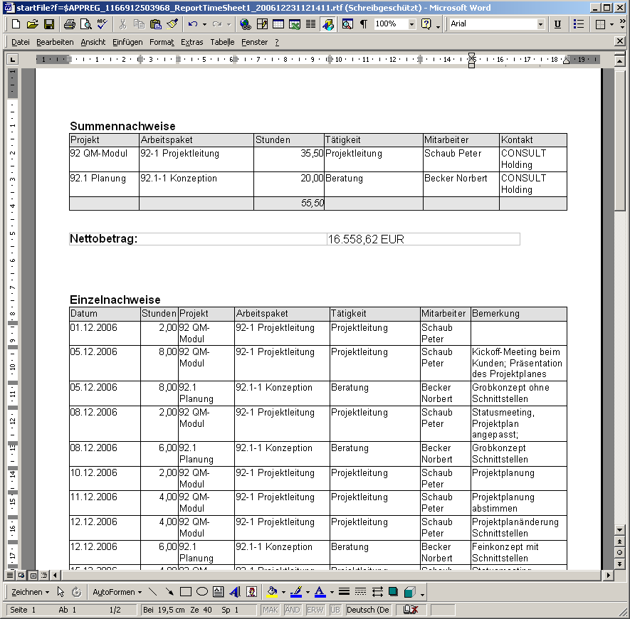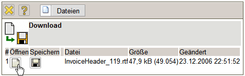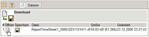 Das System erzeugt dann eine RTF-Datei die im folgenden Dialog geöffnet oder gespeichert werden kann.