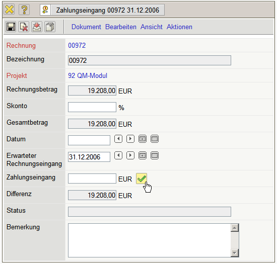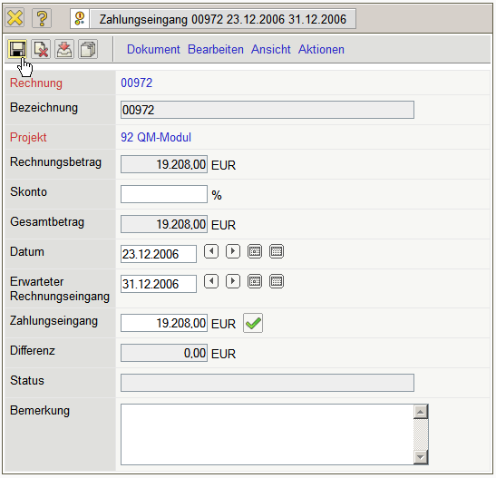 .. und ein Dokument Zahlungseingang angelegt.