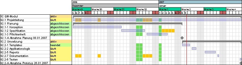 A schedule in project management is the chronological and logical arrangement of the work packages of a project. The result of this process planning is the network and is visualized with the help of the Gantt chart. In Projectile, project sequences are defined in the document jump order and realized in the project evaluation.