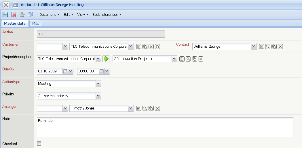 • Arranger: An action can be assigned to the responsible employee. The agents/consultants are administered in the Employees form.