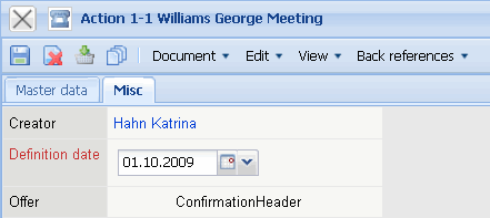 • Action Type: In the field Action Type the in Collections defined sales and marketing activities and actions or project actions of a business contact can be defined.