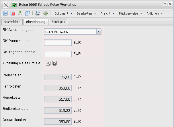 Travel Expenses: This field displays the amount of the travel costs (overnight stays, service, … ) for the defined trip.