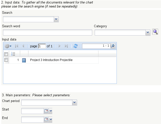 • Search Machine: Search Word and Category This element is used to filter the selected data from the categories. Only the document type project is available for selection. How to operate the search machine is described in chapter 3.2.2.3 and can be performed, if necessary, a multiple amount of times.