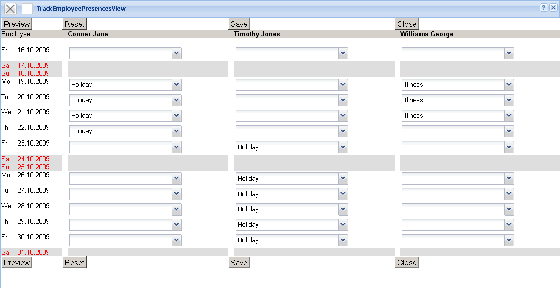 Note: The option “Employee Absences” is identical to the described function, but can only be used by the logged on user. This option is used if the employee enters his/her own absences.
