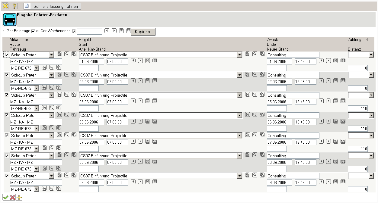 Tipp: Mehr über dieses Thema erfahren Sie im Abschnitt 4.3.9 Schnellerfassung Fahrten.