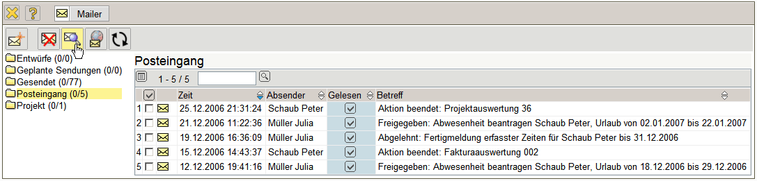 Internal mail, in addition to the actual message, can include many optional Projectile forms. This form will be created as links in the mail and can be opened from the recipients of the message (if an appropriate authorization exists). In the example, the message contains a reference to an action, which the receiver …