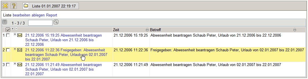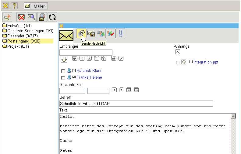 Internal mail, in addition to the actual message, can include many optional Projectile forms. This form will be created as links in the mail and can be opened from the recipients of the message (if an appropriate authorization exists). In the example, the message contains a reference to an action, which the receiver …