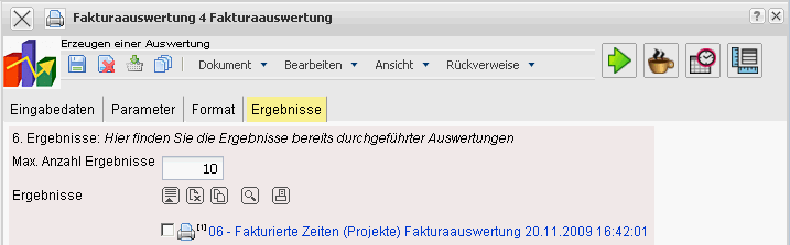 In diesem Reiter befinden sich die maximale Anzahl der Ergebnisse und die Ergebnisse der bereits durchgeführten Auswertungen.