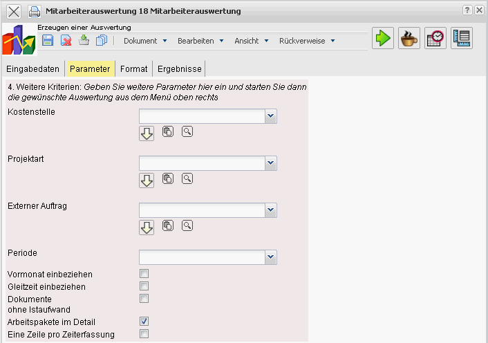Tipp: Mehr zu diesem Thema erfahren Sie im Abschnitt Bedienung der Auswertungen und Mitarbeiterauswertung.