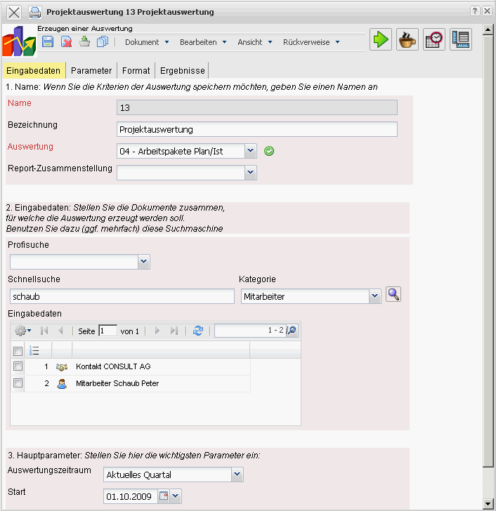 Tipp: Mehr zu diesem Thema erfahren Sie im Abschnitt Bedienung der Auswertungen und Projektauswertung.