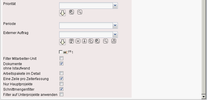 Externer Auftrag: Diese Auswahl bezieht sich auf das Extern-Kennzeichen des Projektes und schränkt entsprechend die Auswahl des Projektes ein (es werden nur externe Projekte angezeigt).