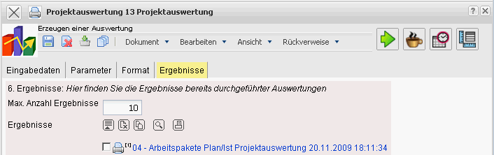 In diesem Reiter befinden sich die maximale Anzahl der Ergebnisse und die Ergebnisse der bereits durchgeführten Auswertungen.