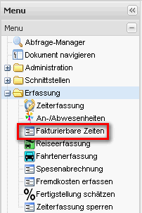 Die fakturierbaren Zeiten können durch die linke Menüleiste …