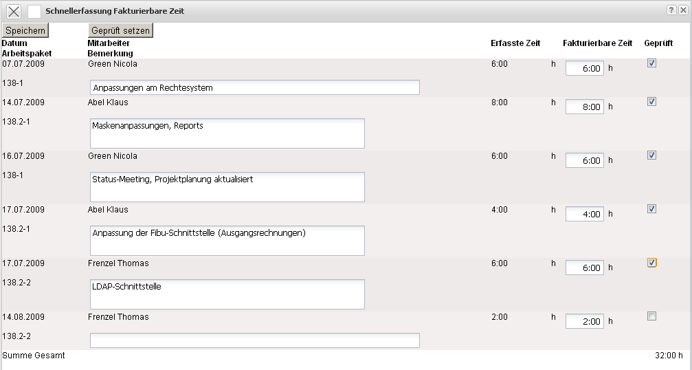Hier öffnet sich nun das Schnellerfassungsfenster für die fakturierbaren Zeiten.