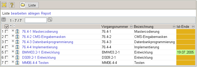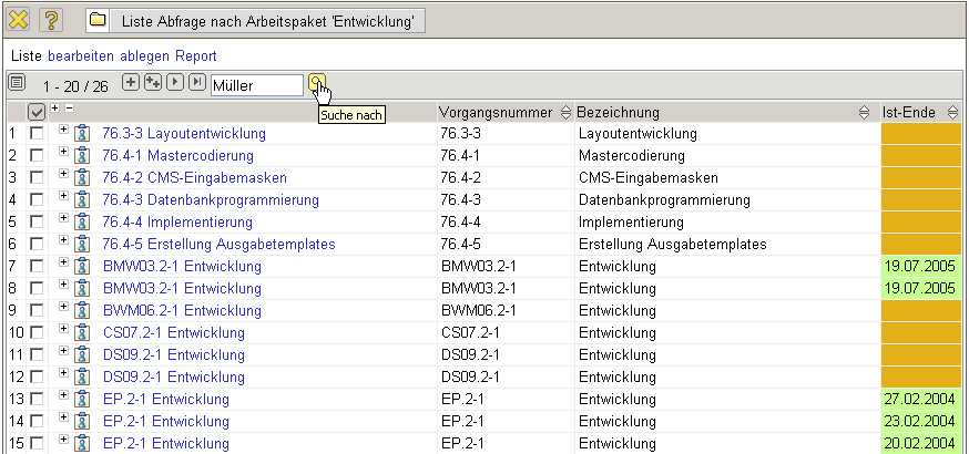 … und in der Trefferliste werden nun alle Arbeitspakete angezeigt, die den Begriff Customizing enthalten. Dabei spielt es keine Rolle, ob dieser String in der Bezeichnung steht oder in einem anderen Element des Dokumentes.