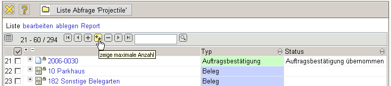 können in der Trefferliste weitere 20 Treffer (also nach der ersten Betätigung 40) angezeigt werden. Bei erneuter Anwendung der Funktionalität