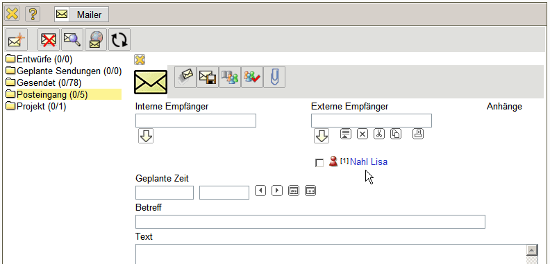 Falls das optionale Mailsystem Mailer verwendet wird, kann auch aus der Funktionsleiste der Mailer …