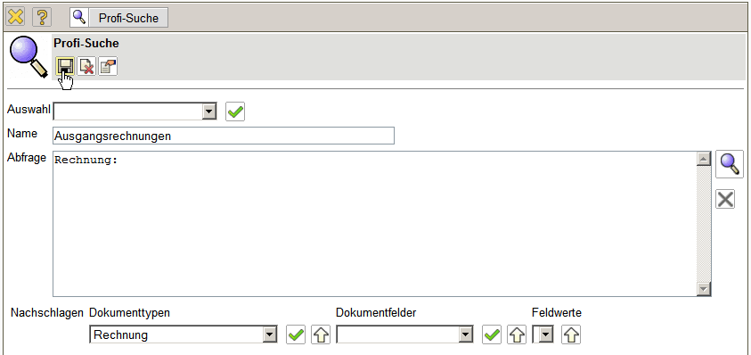 Die erstellte Profi-Suche wird weiter konkretisiert. Im nächsten Schritt wird diese Abfrage mit dem Rechnungsdatum verknüpft.