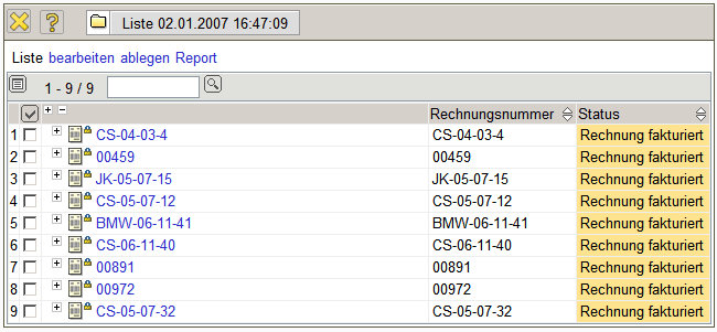 Im folgenden Beispiel soll eine Abfrage über die Rechnungen erstellt werden: