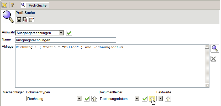 Die erstellte Profi-Suche wird weiter konkretisiert. Im nächsten Schritt wird diese Abfrage mit dem Rechnungsdatum verknüpft.
