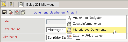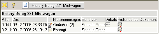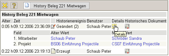 Jede Änderung wird bei einer Aktivierung der Historie protokolliert. Mit Hilfe der Funktion können (bei entsprechender Berechtigung) die Änderungen in der Maske eingesehen werden.