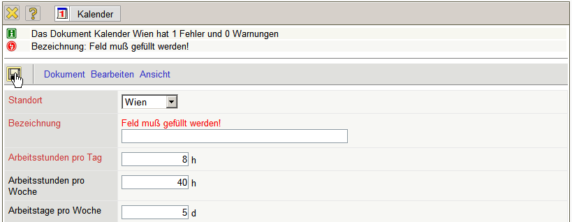 Nach dem Abspeichern werden die Arbeitsstunden pro Tag (wenn nicht manuell definiert) berechnet und die neuen Kalendereinstellungen übernommen.