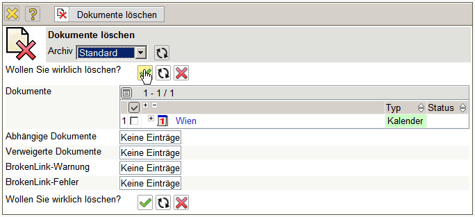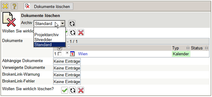 … gelöscht wird (Archiv Standard oder Shredder - siehe Abschnitt 3.07.1 Archiv/Papierkorbfunktionalität), …