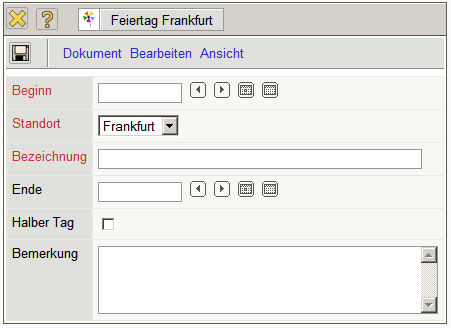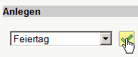 Um einen neuen Feiertag zu definieren (beispielsweise für einen neuen Standort), wählt man im Arbeitsbereich in der Funktionalität “Anlegen” …