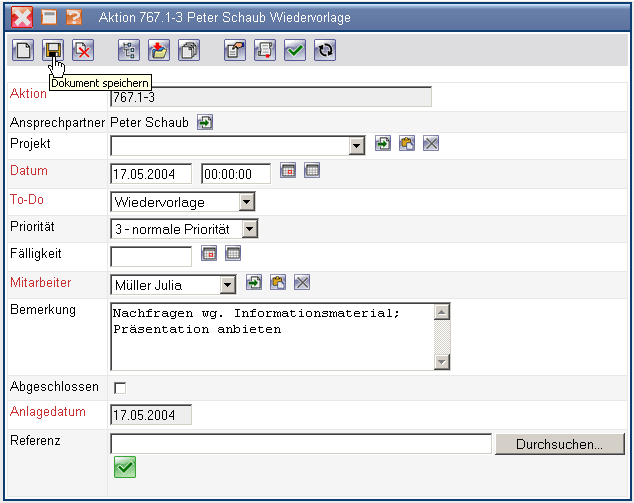 … wird eine Wiedervorlage für den Interessenten zum 17.05.2004.