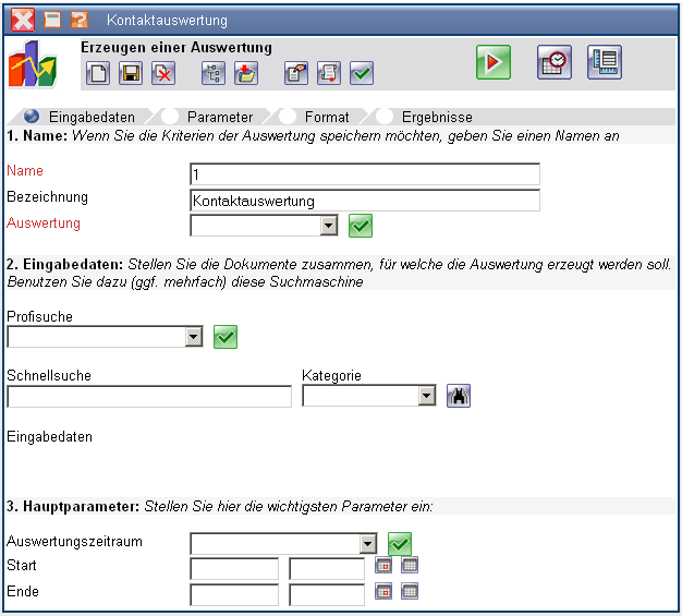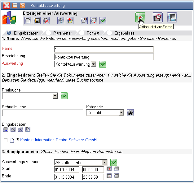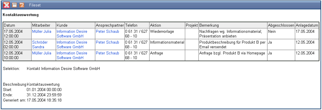Im folgenden Beispiel wird eine Kontaktauswertung geöffnet …