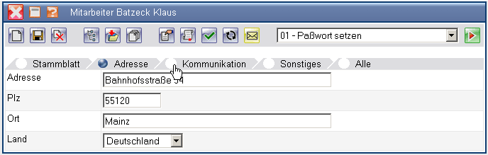 … auf den Reiter “Adresse” gewechselt.