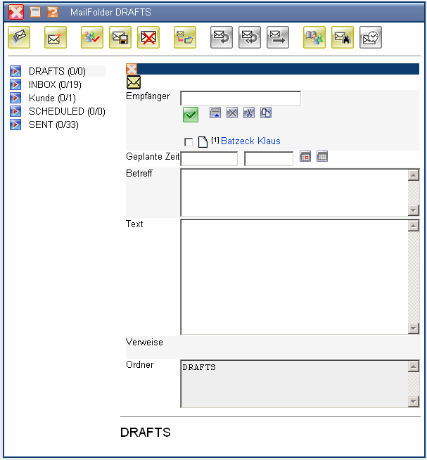 Falls das optionale Mailsystem Mailer verwendet wird, kann auch aus der Funktionsleiste der Mailer …