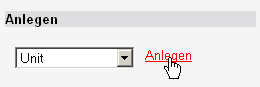 Im folgenden Beispiel soll eine neue Unit angelegt werden. Zunächst aktiviert man die Funktionalität “Neues Dokument” mit der Auswahl “Unit”.