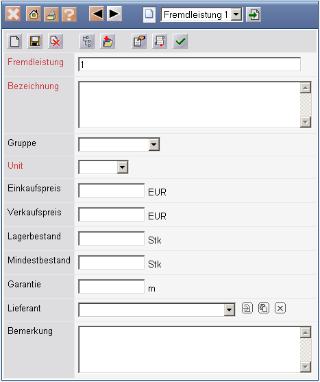 Beim Neuanlegen einer Fremdleistung bzw. Artikels, werden einige Felder automatisch vorbelegt. In der Standardversion von Projectile sind das: