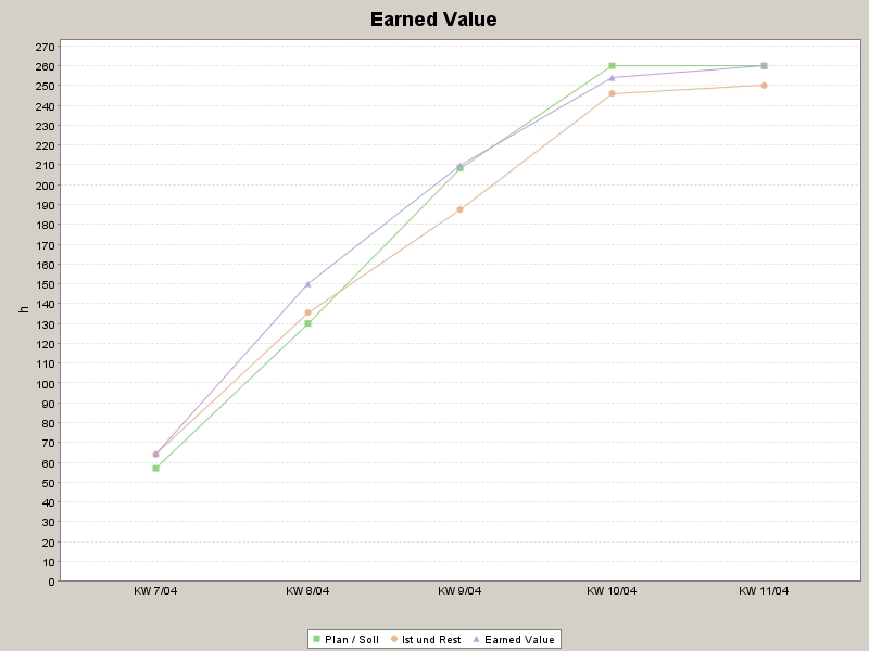• BCWP (Tatsächlicher Plan - kumulierte geplante Kosten der bis zu diesem Zeitpunkt fertiggestellten Aktivitäten).