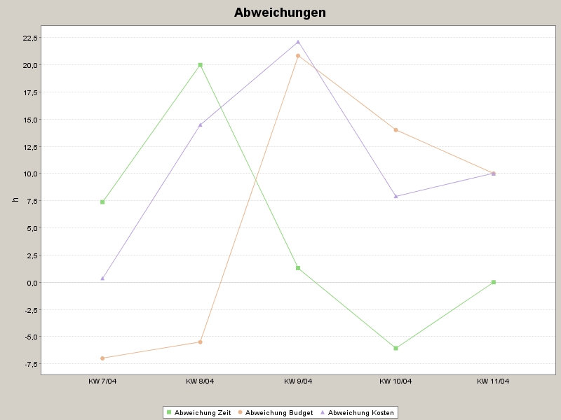 Die zweite Graphik der Auswertung visualisiert die Abweichungen Zeit BCWP - BCWS, Budget BCWS - ACWP und Kosten BCWP - ACWP .