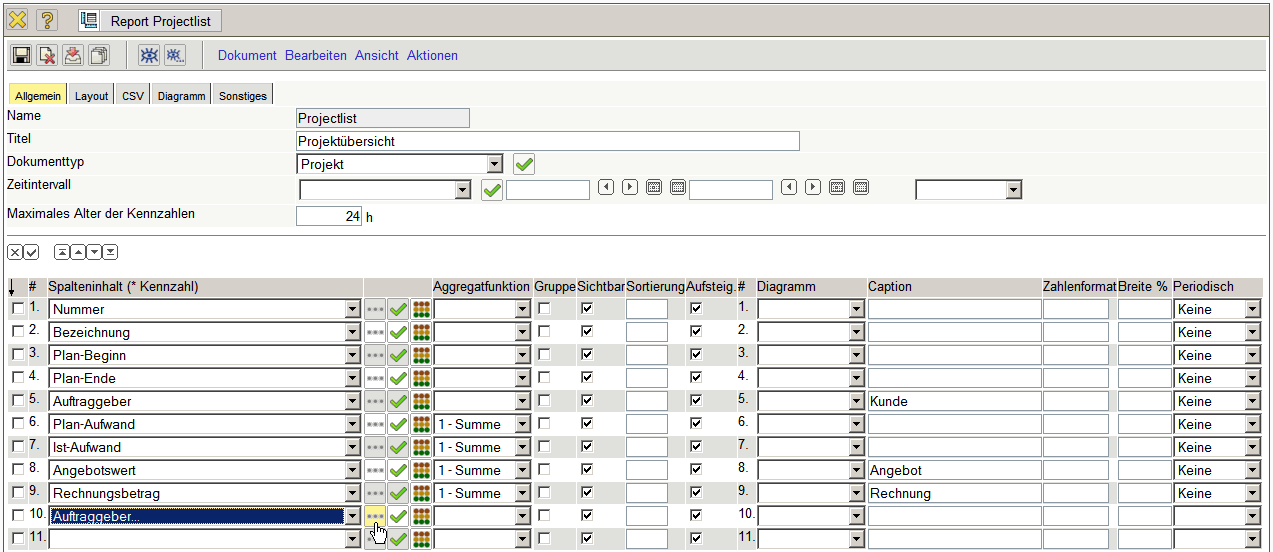 Im folgenden Beispiel werden die erweiterten Funktionalitäten des Designers anhand der “Projectlist” erläutert.