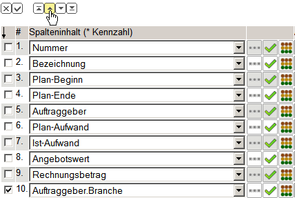 Anschließend wird das Feld umsortiert. Dazu wird das Feld mit Hoch (mehrfach) nach oben verschoben …
