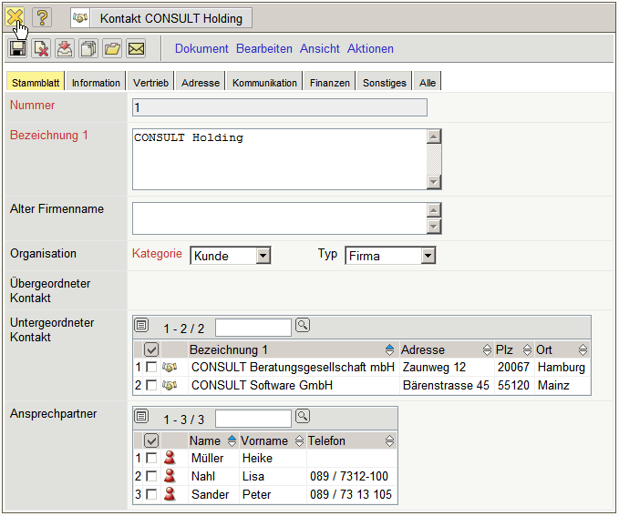 … mit der Möglichkeit, aus dieser Auswertung in die Stammdaten zu verlinken.