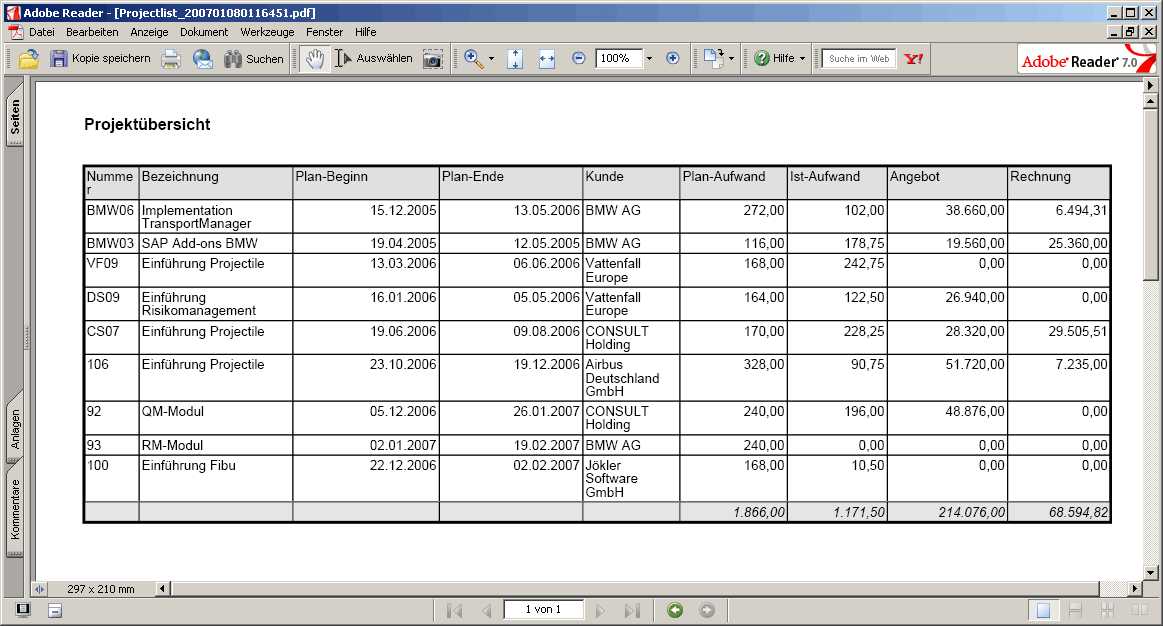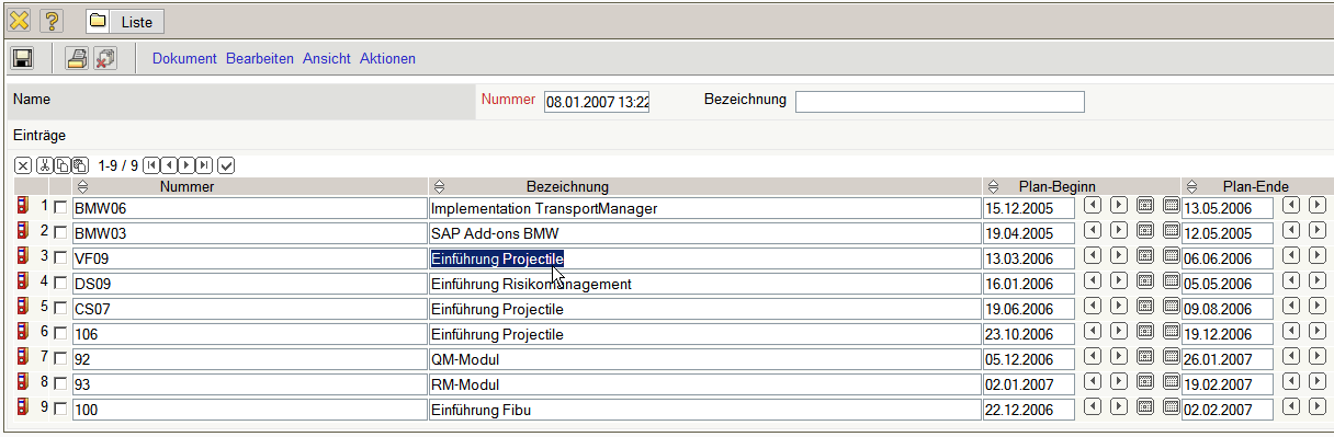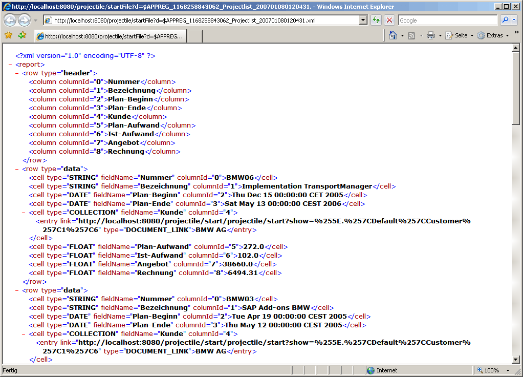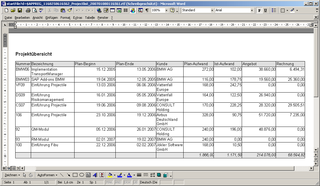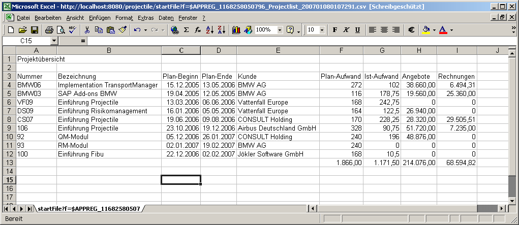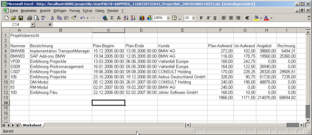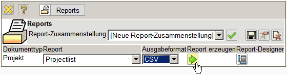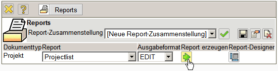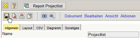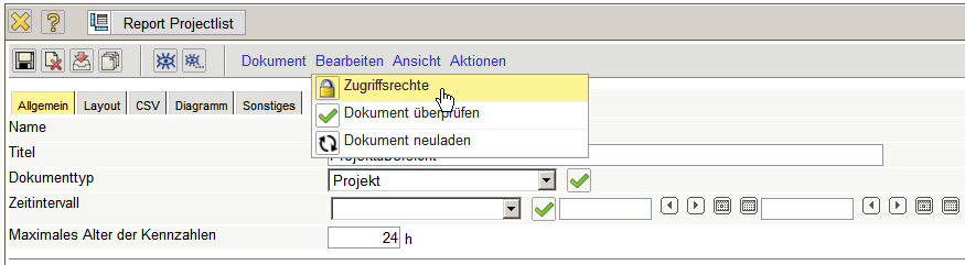 Standardmäßig hat nur der Benutzer, der den ReportMaker erstellt, Zugriff auf den Report. Jeder Report kann aber mit abweichenden Berechtigungen versehen werden (siehe auch Administrationsleitfaden). Im folgenden Beispiel wird für die Projektliste …