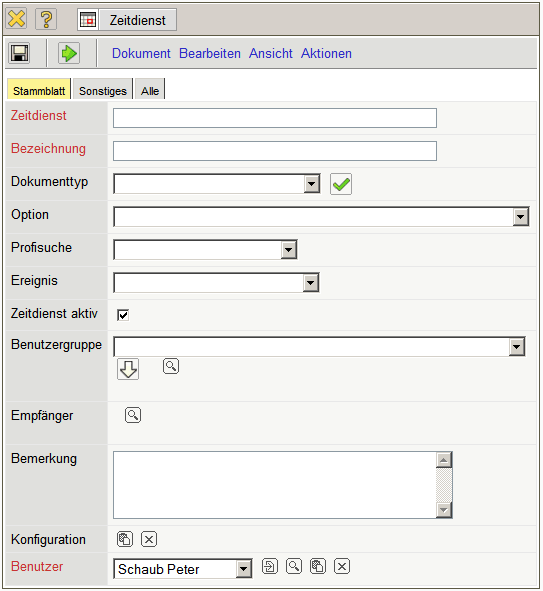 Zunächst wird ein neues Dokument vom Typ Zeitdienst …