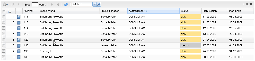 … und in der Trefferliste werden nun alle Angebote angezeigt, die den String CS enthalten. Dabei spielt es keine Rolle, ob dieser String in der Bezeichnung steht oder in einem anderen Element des Dokumentes.