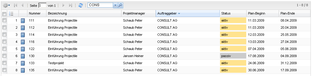 … und in der Trefferliste werden nun alle Angebote angezeigt, die den String CS enthalten. Dabei spielt es keine Rolle, ob dieser String in der Bezeichnung steht oder in einem anderen Element des Dokumentes.