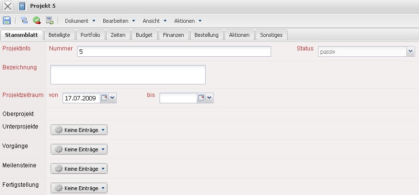 Anschließend sollte die Projektbezeichnung und der Zeitraum gefüllt werden. Der Planzeitraum ist für jedes Projekt wegen der Ressourcenplanung obligatorisch. Das Projektende muss also immer gefüllt sein!
