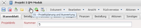 Die Projektplanung wird mit der Aktion “Projektplanung und Auswertung” geöffnet: