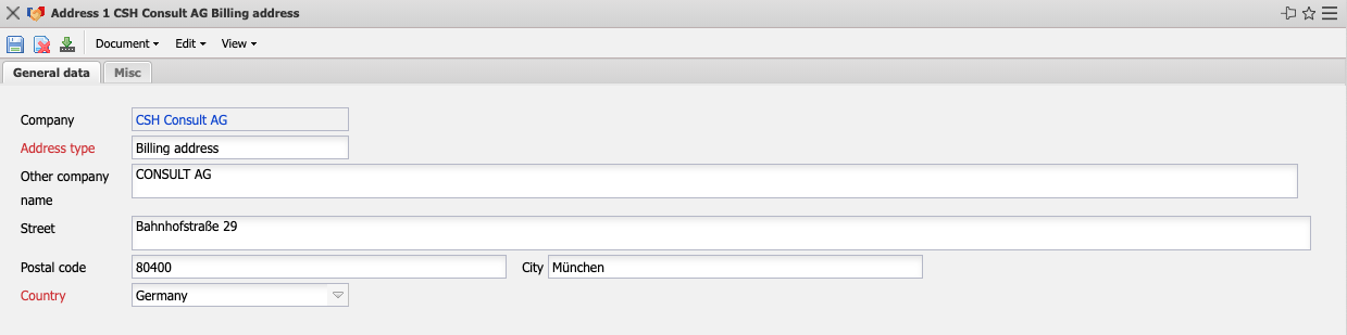 • Address Type: This element is used to classify the address and contains the following characteristics: visitor address, billing address (for invoices), delivery address (for delivery notes) and postal address.