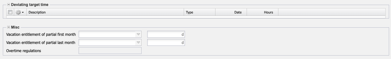 - Non-Tariff Contract: This field indicates employees without a collective agreement. Working time management only takes leave into account for postings and does not determine any flextime buffers.