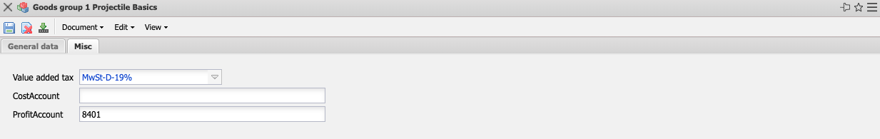 • CostAccount and ProfitAccount: Here you can define the expense and revenue account for postings.